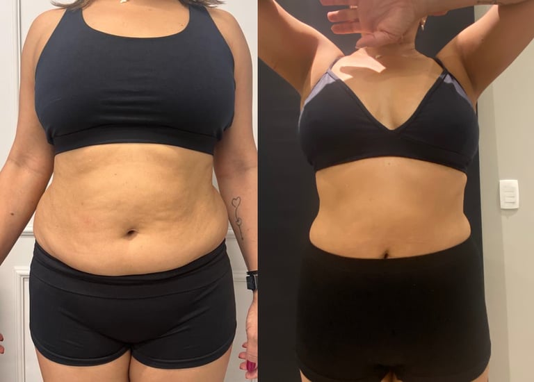 Já tive hérnia umbilical, o que sempre deixava um volume na região. Depois de ter dois filhos, desenvolvi diástase abdominal, e isso fez com que eu acumulasse ainda mais gordura no abdômen uma gordura que eu sempre tive muita dificuldade de perder.